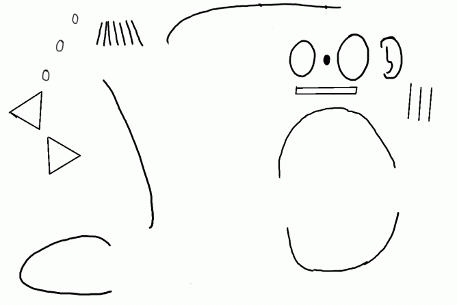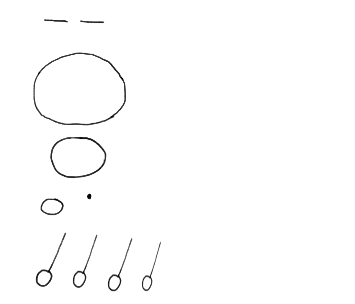 Die Frage ist natürlich, wie weit kann man bei der Darstellung einer Figur (oder eines Gegenstandes) die Anzahl der Linien (Striche) reduzieren. Wo liegt die Untergrenze der Wahrnehmbarkeit - wie viele und welche typischen Linien sind dazu notwendig? Das Ergebnis solcher zeichnerischen Überlegungen könnte in etwa so aussehen ...